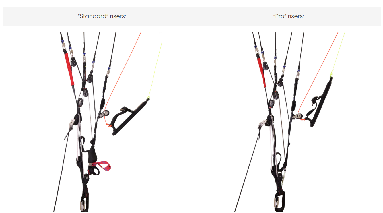 • Pro – risers do not have trimmers and the main lines are unsheathed. It is an uncompromising solution for world-class competition pilots. Pro version is available in sizes 18 and smaller.