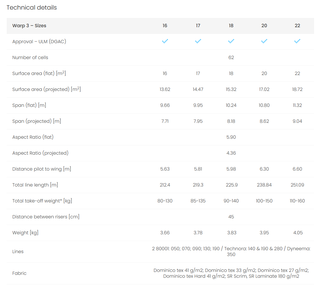 The Warp 3 is a high-performance cross country wing aimed at pilots who expect the highest performance on the market.